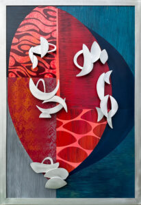Combining mixed media elements that evoke natural, organic forms, Cherie Haney’s artwork provides a centerpiece that enhances any decor.